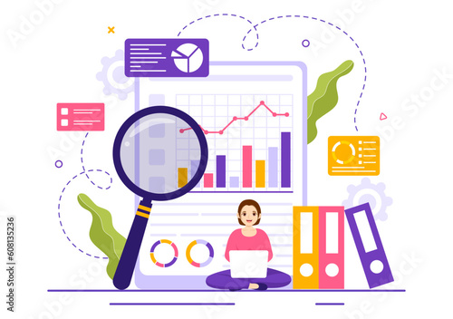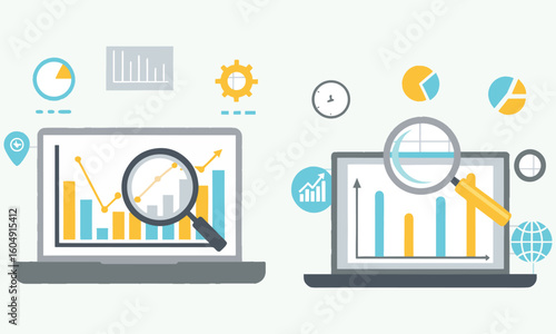 Vyhledávání na webu a analýza dat 3D vektorové ilustrace. Okno prohlížeče, lupa a graf graf izometrický návrh. Výzkum obchodních informací, seo a marketingový koncept