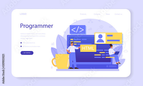 Webové stránky onboarding obrazovky. Programátoři kódování softwarové aplikace. Nabídka vektorový banner šablona pro webové stránky a vývoj mobilních aplikací. Moderní design lineární umění ploché ilustrace