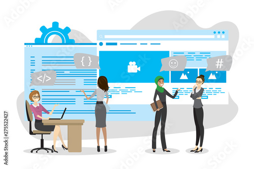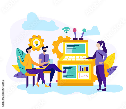 Stránky jsou ve výstavbě. Systémoví administrátoři řešení problémů chyba stránky webu, plochá vektorová ilustrace. Služby opravy webových stránek.