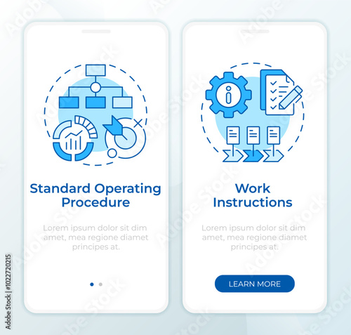 Onboarding pro webové stránky a mobilní aplikace. Menu banner vektorová šablona pro vývoj webových stránek a aplikací. Server, počítač, webové stránky, Program, aktualizace, datové průchozí obrazovky.