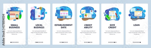 Onboarding pro webové stránky a mobilní aplikace. Menu banner vektorová šablona pro vývoj webových stránek a aplikací. Tisk, Komentáře, dokument, odesílání pošty, mazání, vyhledávání návodů.