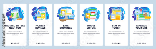 Onboarding pro webové stránky a mobilní aplikace. Menu banner vektorová šablona pro vývoj webových stránek a aplikací. Analytika, Obchodní nástroje a vize, růst trhu, ekonomický trend, reklamní obrazovky.