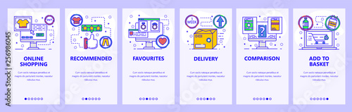 Onboarding pro webové stránky a mobilní aplikace. Menu banner vektorová šablona pro vývoj webových stránek a aplikací. Digitální modifikace, proces tvorby, přenos dat, další obrazovky. Tenká linie umělecký styl.