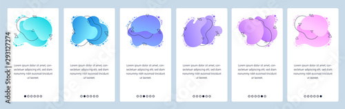 Webové stránky a mobilní aplikace onboarding obrazovky. Menu banner vektorová šablona pro vývoj webových stránek a aplikací s trendy modrým a fialovým gradientem abstraktní dynamické tvary tekutin.