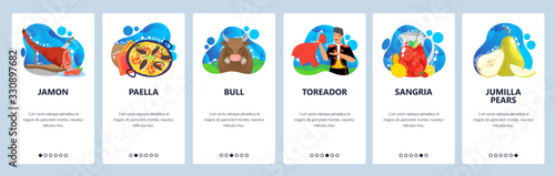 Webové stránky a mobilní aplikace onboarding obrazovky. Menu banner vektorová šablona pro vývoj webových stránek a aplikací s trendy žlutými a růžovými gradienty abstraktní dynamické tvary tekutin.