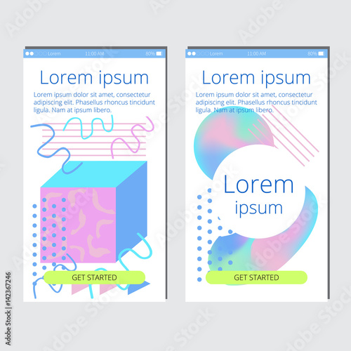 Onboarding pro webové stránky a mobilní aplikace. Menu banner vektorová šablona pro vývoj webových stránek a aplikací. Obličejová maska a krém, Toner, parfém, lak na nehty, holicí pěna průchod obrazovky.