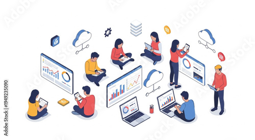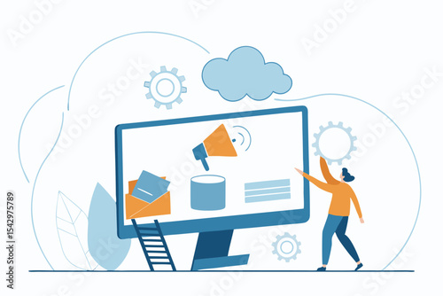 Tvorba webových stránek proces složení s mikro znaky a velký počítačový monitor, vektorové ilustrace. Návrh a vývoj webových stránek.