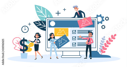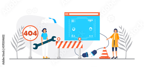 Ilustrace konceptu vektoru webových stránek. Proces vytváření, aktualizace, aktualizace a údržby webových stránek. Webdesign a vývoj, seo služby, koncepty týmové práce pro webový banner, webové stránky atd.