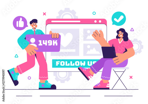 Velký svatební dort se dvěma prsteny Cake toppers, mikro postavy nevěsta a ženich, muž s dárkovou krabičkou, žena uvolňující holubice vektorové ploché ilustrace. Sladký dezert, Cukrárna, služba organizátora svateb