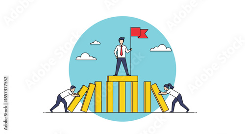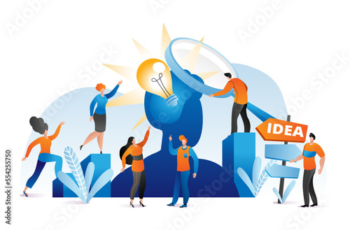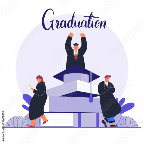 Obrovský svatební dort s nevěstou a ženichem, prsteny a drobné postavy hosté, vektorový plochý design ilustrace. Koncept služeb plánování svatebních oslav pro webový banner, webovou stránku atd.