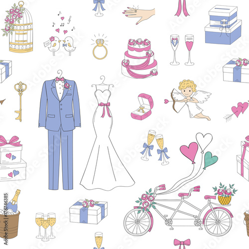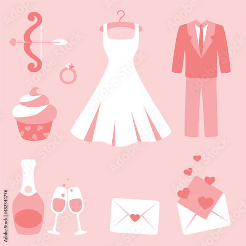 Svatební přípravy web banner vektorové ilustrace. Příprava na svatební obřad, výběr a plánování data, místa, menu restaurace a dekorace, pozvánka hostů