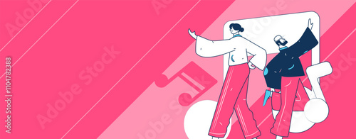 Micro mužské a ženské postavy zdobení svatební oblouk, vektorové ilustrace. Svatební party dekorace, aranžování květin, květinářství služby koncept pro web banner, webové stránky atd.
