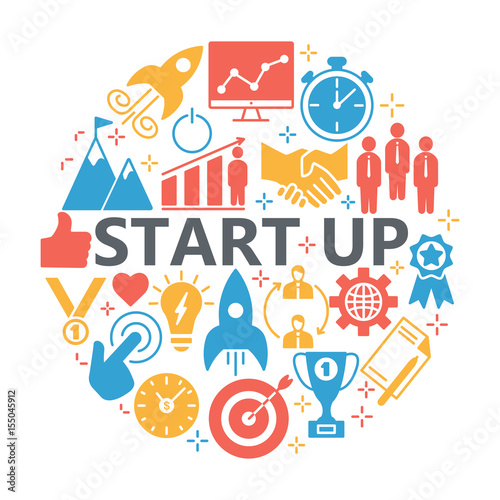 Svatební typografie banner šablona, vektorové ploché ilustrace. Šťastná nevěsta a ženich, hosté, šéfkuchař s velkým dortem, oblouk, fotograf fotografující novomanžele, jen manželský pár na koni svatební auto.