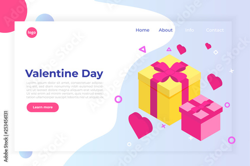 Šablona vstupní stránky svatební agentury. Koncept designu vektorového plochého stylu pro web svatební plánovač a vývoj mobilních stránek. Prsten s diamantem, balónky, dárkové krabičky, kytice květin, šampaňské.