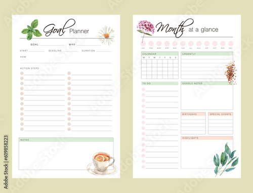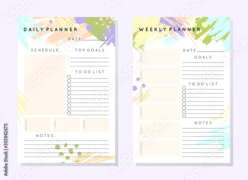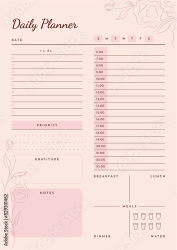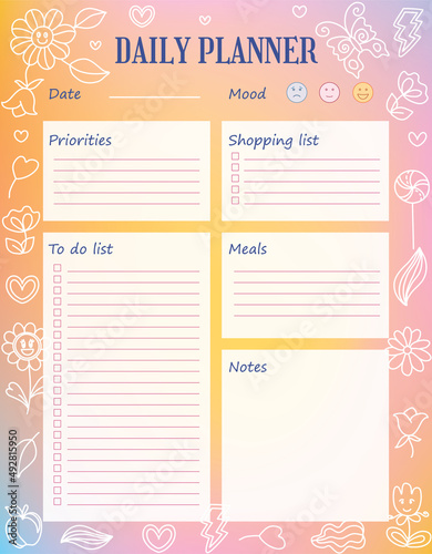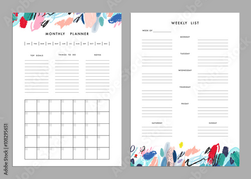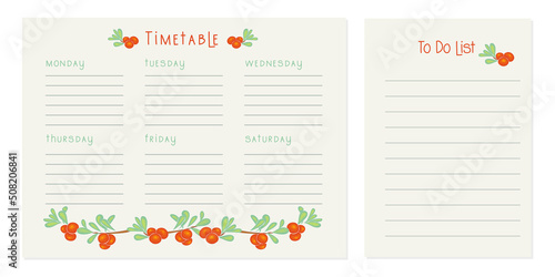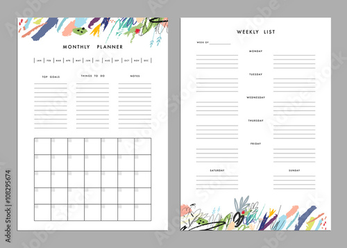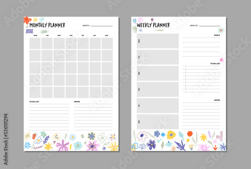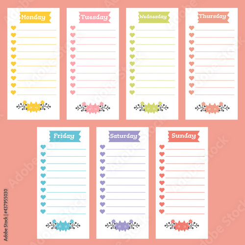 Týdenní plánovač vektorové šablony s roztomilá zvířata veverka, ježek, králík, mýval a květinovým vzorem. Organizátor a plán s místem pro poznámky.