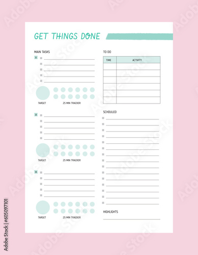Týdenní plánovač vektorové šablony s roztomilé kočky a domácí zvířata příslušenství. Organizátor a plán s místem pro poznámky.