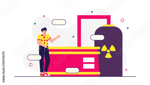 Mikro znaky sklizeň obrovské pšeničné uši, vektorový plochý styl designu ilustrace. Lidé pěstují pšenici v květináčích. Symbol bohatství.