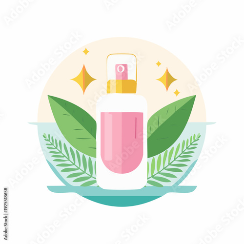 Bílá prázdná kosmetická láhev maketa, papír řezané řemeslné styl zelené lístky máty, postříkání, vektorové ilustrace. Šablona reklam na šampon Mint. Produkt pro péči o krásu a vlasy.