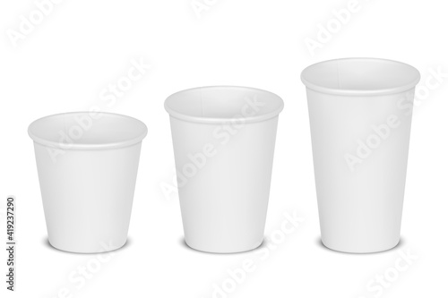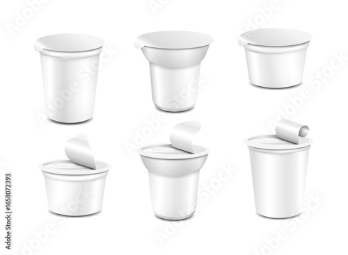 Květináč mock up set. Vektorové realistické ilustrace bílé prázdné květináče izolovaných na bílém pozadí.