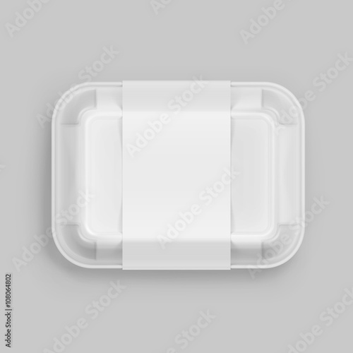 Plastová krabička na oběd mock up set. Vektorové realistické ilustrace bílé prázdné plastové nádoby na potraviny izolovaných na bílém pozadí.