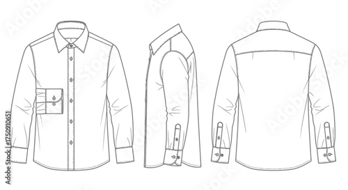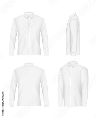 Bílá pánská košile 4 strany maketa set. Vektorové realistické ilustrace izolovaných na bílém pozadí.