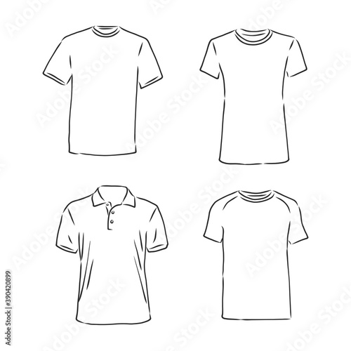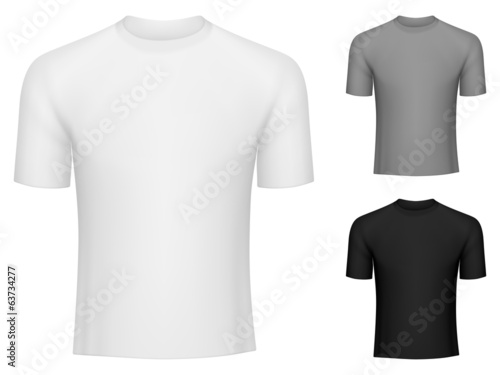 Bílá košile a tričko maketa set, vektorové izolované ilustrace. Pánské realistické oblečení Přední strana šablony.