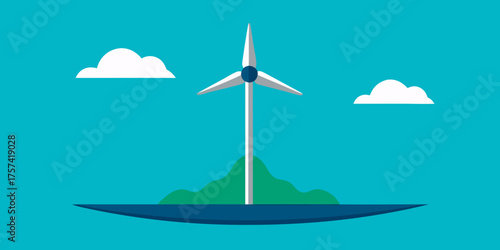 Koncept ochrany životního prostředí vektorová plochá ilustrace. Větrné mlýny větrné turbíny, univerzální recyklační symbol a zelené listy. Ekologická Příroda. Větrná energie. Alternativní zdroje energie.
