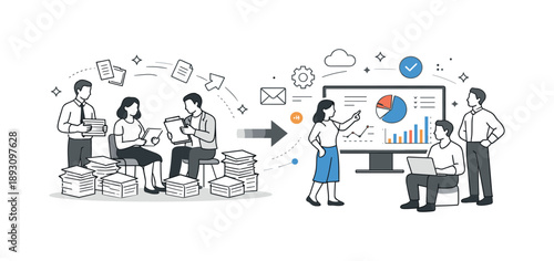 Obrovská pohárová trofej a úspěšní drobní podnikatelé slavící vítězství, vektorové ilustrace. Vítězové, koncept týmových úspěchů pro webový banner, webovou stránku atd.