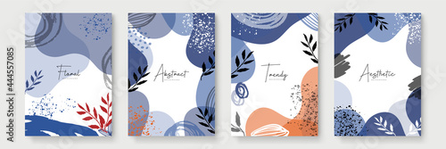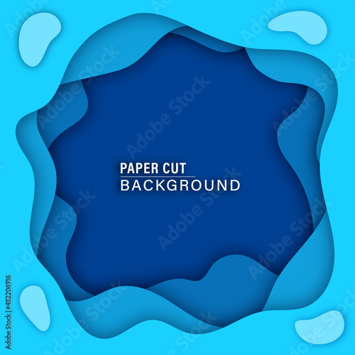 Zimní banner sezóna papír řez 3D vektorový design. Stromy a sněhové vločky na modrém pozadí v uměleckém řemeslném stylu. Vánoční ilustrace. Prázdninová krajina pro novoroční přání