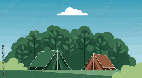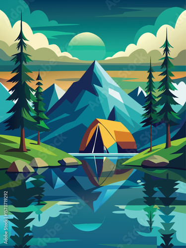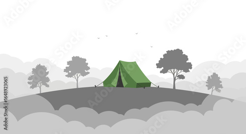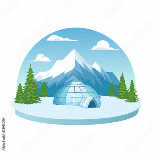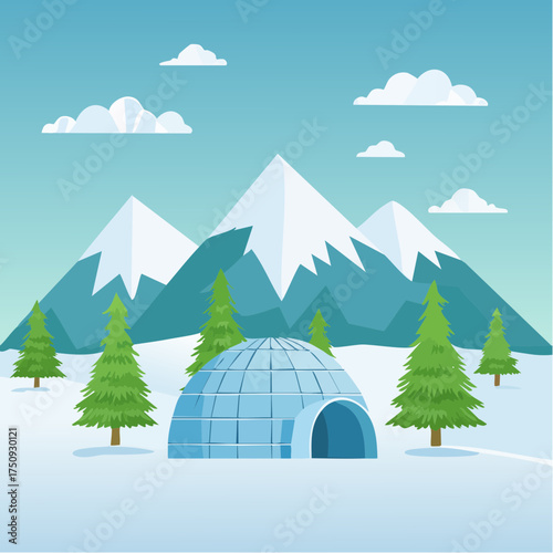 Koncept zimního glampingu. Vektor zasněžený les s útulným stanovým domem. Vánoční Příroda krajina ilustrace. Dovolená v chatě a sezóna cestování