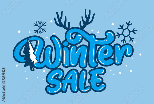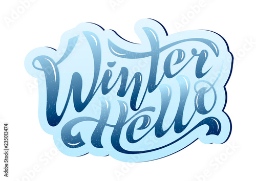 Zimní kreativní ruční písmo typografie, vektorové ilustrace v papírovém umění moderního řemeslného stylu. Složení zimní sezóny s papírovými řezanými stromy, koulemi vánočního stromku, siluetami sněhové vločky a zajíce.