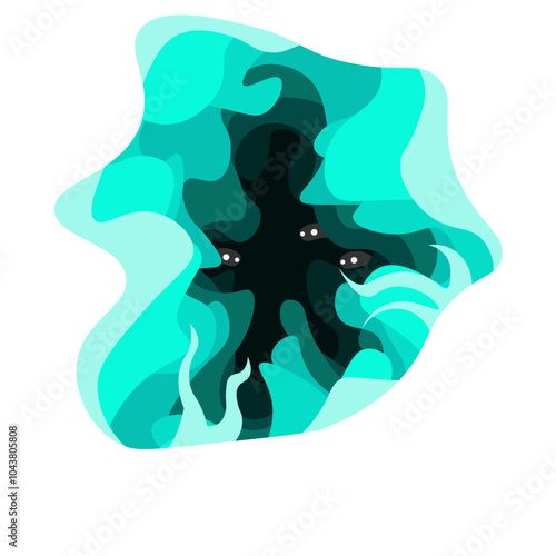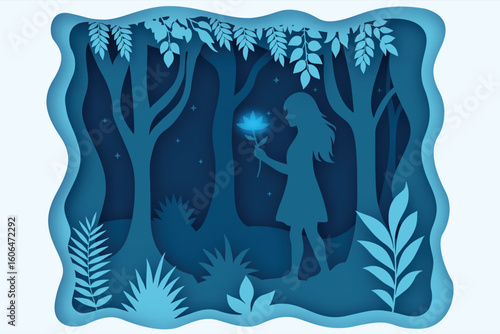 Zimní vektorové ilustrace. Sob v lese se sněhem 3D papír cut art craft styl. Veselé Vánoce a Nový Rok přání design překrývající se vrstvy