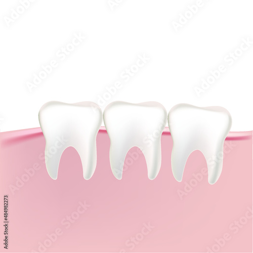 Moudrost zuby problémy plakát design šablony, vektorové realistické ilustrace. Ovlivněný zub moudrosti, který způsobuje poškození jiného zubu. Stomatologie, koncept zubní chirurgie.