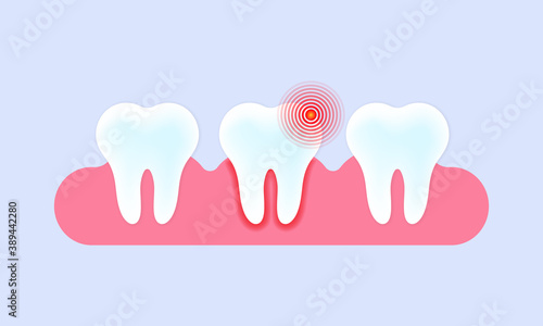 Moudrost zuby plakát šablona, vektorové realistické ilustrace. Ovlivněný zub moudrosti, který způsobuje zubní problémy, jako je zubní kaz nebo kaz na jiný zub. Koncept zubního zdraví.