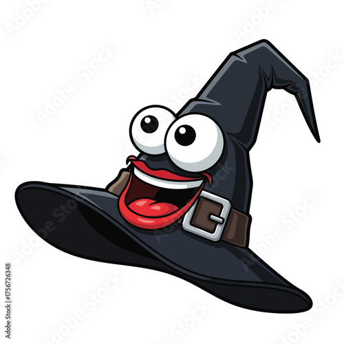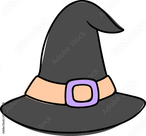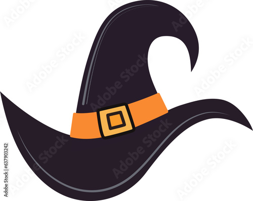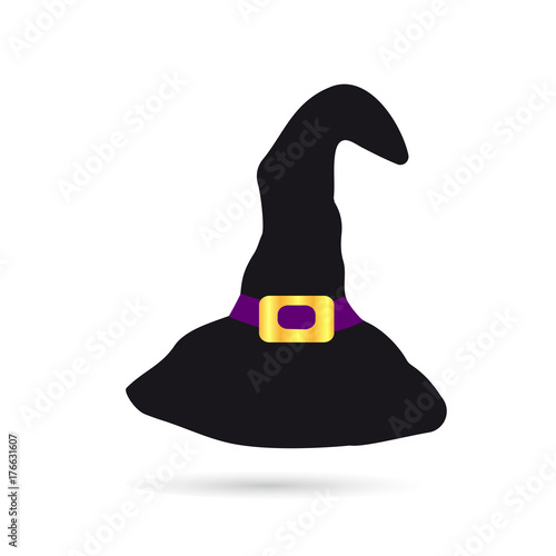 Černá čarodějnice klobouk s přezkou a červenou stuhou pásky vektor. Halloween průvodce cap kostým ikona izolovaných na bílém pozadí