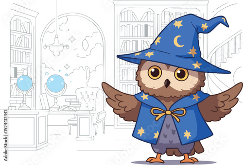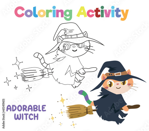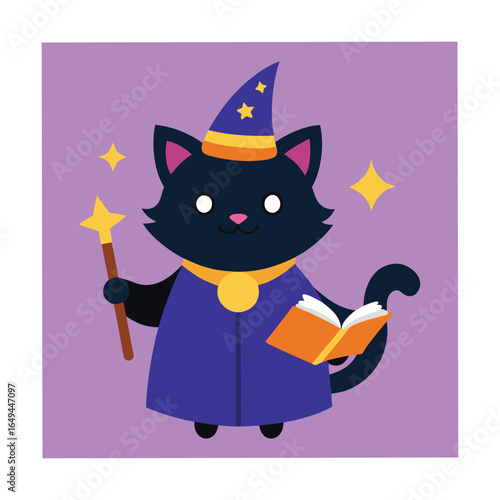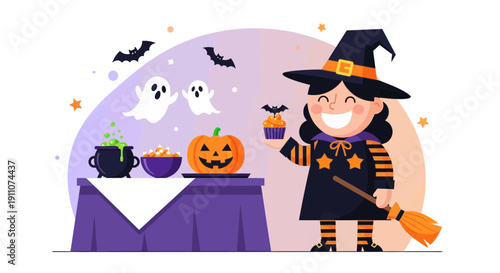 Roztomilá čarodějnice s ikonou vektorové karikatury bat. Izolovaných Dívka kouzelník v klobouku drží létající liška na ruce na bílém pozadí