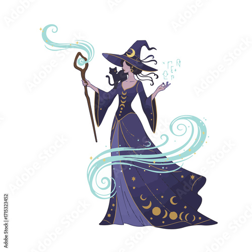 Čaroděj, mág vaření lektvar v kotli a čtení kouzlo knihy, ploché vektorové ilustrace. Čaroděj, čaroděj, Starý vousáč v modrém kouzelnickém rouchu, klobouk. Tajemství, fantazie, čarodějnictví, magie Merlin kouzla.