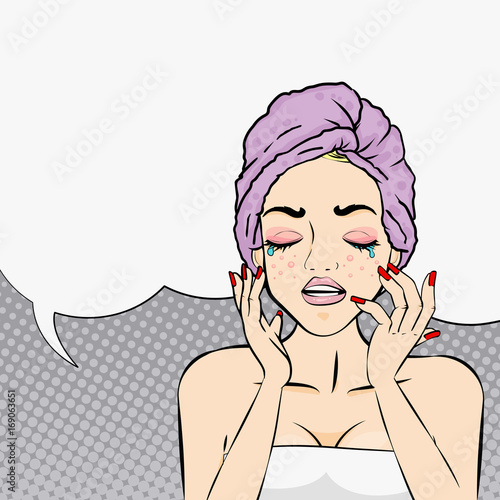 Žena po sprše přemýšlet o něčem. Vektorová ilustrace v komiksovém stylu pop art.