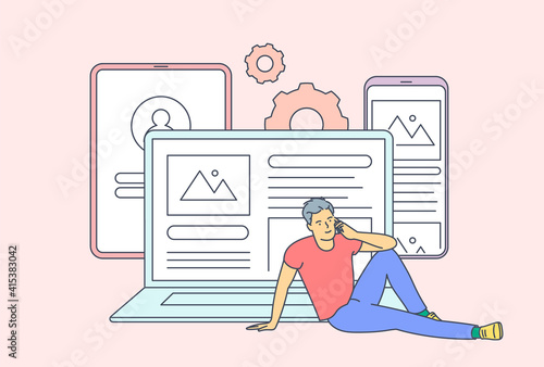 Žena použití laserové nohy odstranění chloupků postup vektorové ikony izolovaných na bílém pozadí.