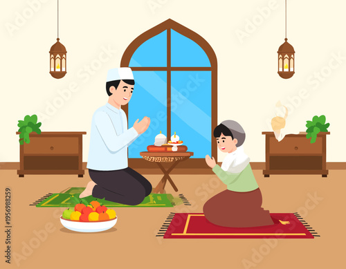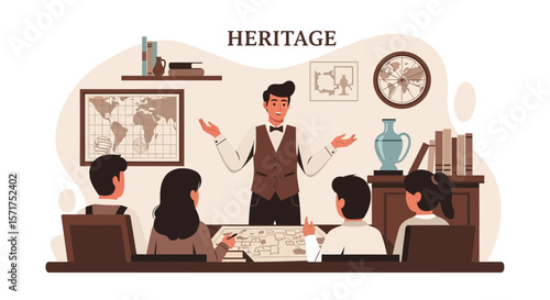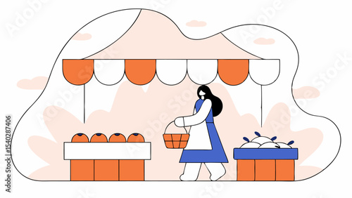 Žena pekař cukrářka na sobě zástěru stojící u pultu s velkým čokoládovým dortem, vektorová plochá ilustrace. Interiér pekárny, šťastná dívka prodavačka prodávající čerstvé sladké dezerty. Cukrárna.