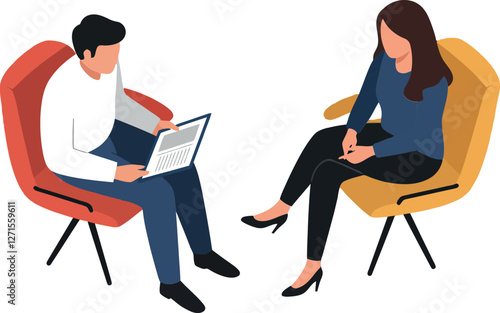 Žena charakter čtení knihy sedí na stoličce vektorové ikony izolovaných na bílém pozadí.