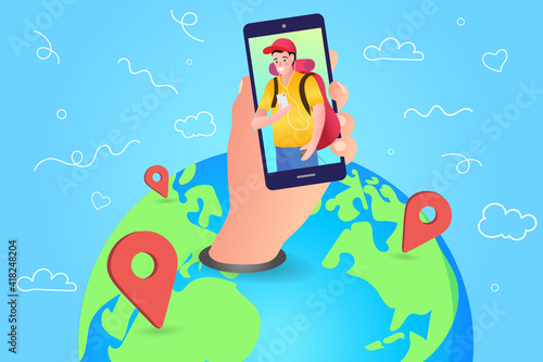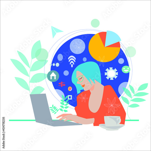 Žena zkontrolovat její váhu na stupnici a zapsat výsledky. Žena mluvit po telefonu, zatímco na piknik v parku. Koncept ilustrace. Vektor web design šablony.