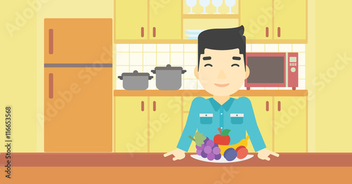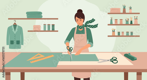 Mladá žena připravuje jídlo v kuchyni. Vektorové ilustrace v plochém stylu. Vaření hobby koncept designový prvek.