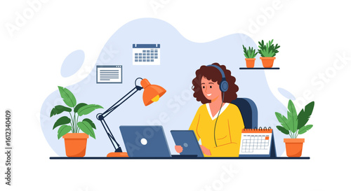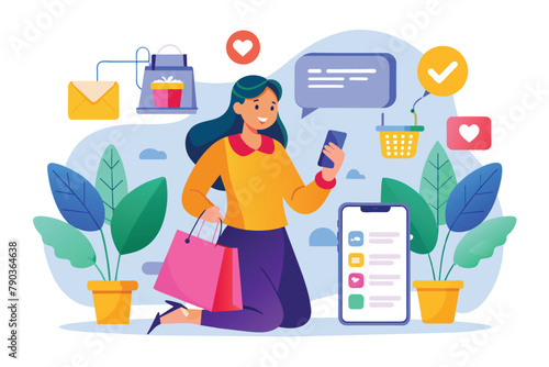 Žena zákazník na brýle shop výběr a nákup kapky pro oči nebo kontaktní čočky kapaliny na vitríně vektorové ilustrace. V Ophthalmology store concept