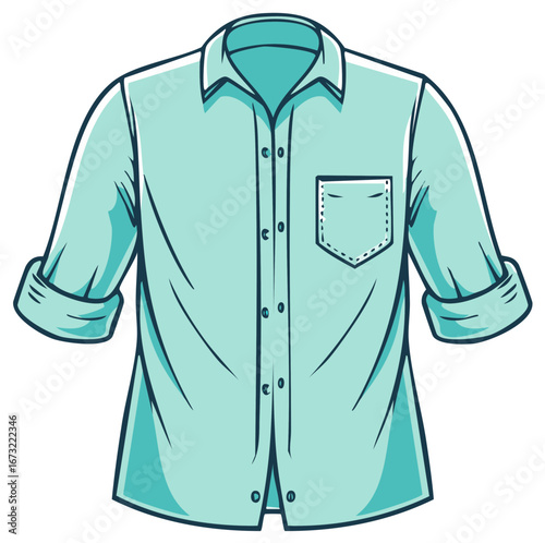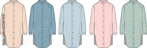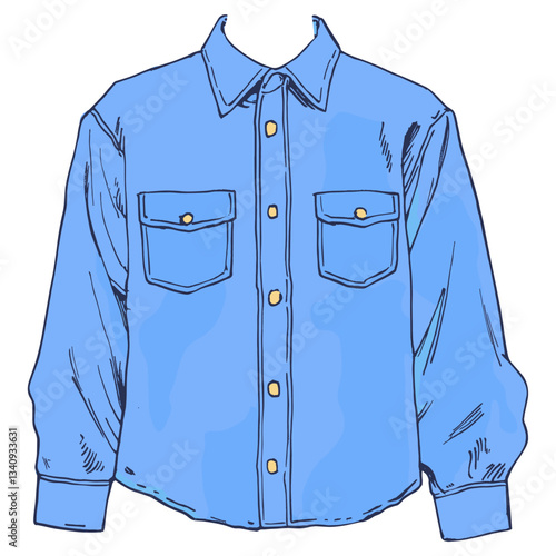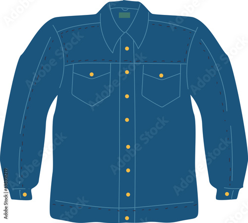 Žena denim dlouhý rukáv košile vektorové ikony izolovaných na bílém pozadí.