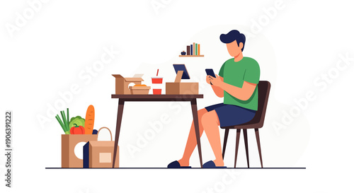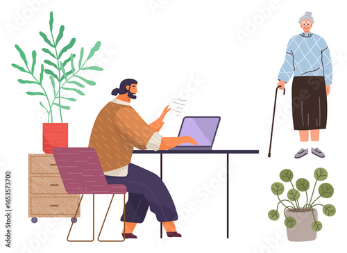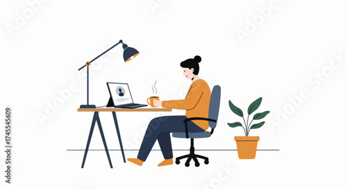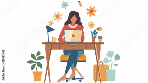 Žena ve sluchátkách mluví do mikrofonu před přenosným počítačem, ploché vektorové ilustrace. Dj vytváří podcast, hostování živé rozhlasové show ve studiu. Podcasting, online rádio.