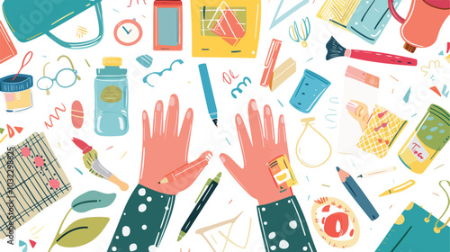 Žena dělá manikúru v salonu krásy. Vektor kreslený plakát ilustrace. Ženská ruka s malovanými nehty. Nehtové lázně a kosmetické ošetření. Nástroje pro manikúru a pedikúru.