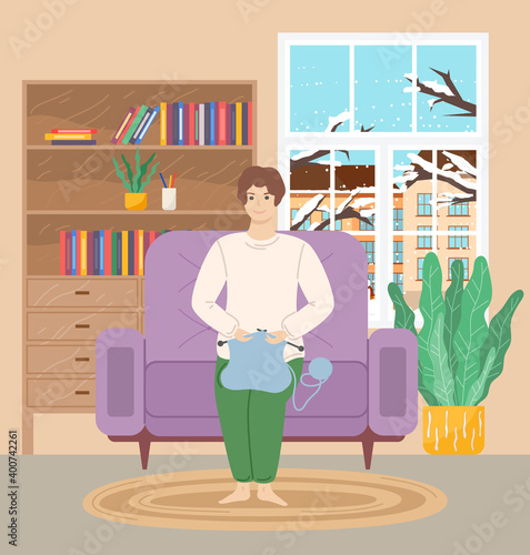 Žena dělá pedikúru doma sama. Koncepce péče o krásu ilustrace. Vektor web design šablony. Žena leštit a malovat nehty. Nástroje pro pedikúru a manikúru, barva, pilník na nehty.