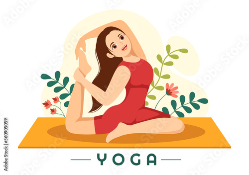 Žena dělá jógu venku v parku. Ilustrace konceptu letního času. Vektor web design šablony. Mladá dívka si její zmrzlinu a chodit na steet. Letní víkend.