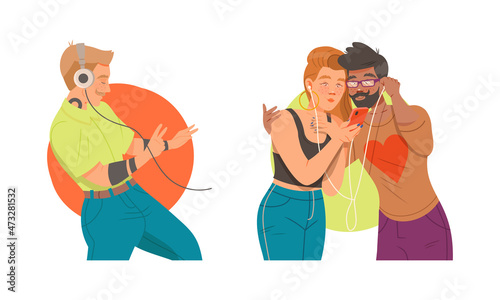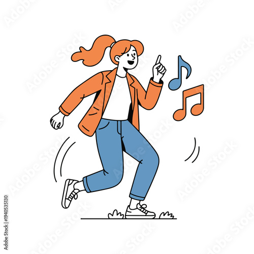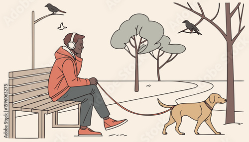 Žena sní během procházky se psem vektorové ikony izolovaných na bílém pozadí